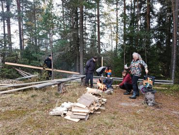 Päivä oli uskomaton ja sujui vauhdilla hyvässä hengessä. Tehokkaan työn ohella ehdittiin nauraa, jutella ja tutustua – juuri sitä, mitä yhteisö parhaimmillaan on. Nuotiolla paistetut makkarat, kahvit ja tiikerikakku maistui talkoopäivän lomassa.